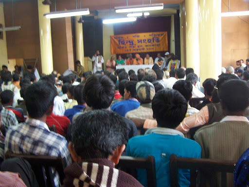 Among the distinguished speakers were Swamy Ashimanandaji from Dangs, Gujarat; Smt. Himani Savarkar, All India Secretary, Hindu Mahasabha, Pune; Sri Pramod Mutalik, Chief of Hindu Rashtriya Sena, Bangalore; Swamy Pradiptanandaji, President, Bharat Sevashram Sangha, Murshidabad, West Bengal; Swamy Punyalokanandaji, Ramkrishna Ashram, Gorer Hat, West Bengal, Sri Bharat Bhai, Chief, Swamy Vivekanand Sanskar Kendra, Valsad, Gujarat; Sri Shailendra Jain, Bajrang Dal Prant Satsang Pramukh, Delhi; Sri Anil Lamba, President, Bharatiya Janashakti Yuva Morcha, Delhi Pradesh; Sri Sudhir Patel, Former Prant Samyojak, Bajrang Dal,South Bihar; Sri Vinay Singh, Rashtriya Swabhiman Andolan, Delhi; and other eminent guests from the city. Sri Govindacharya was expected to attend but he was detained in Prayag for some religious function , he sent his representative Sri Vinay Singh with his written message. Sri Balkrishna Naik, Jt. General Secretary of VHP, too sent his written message expressing his support and good wishes.